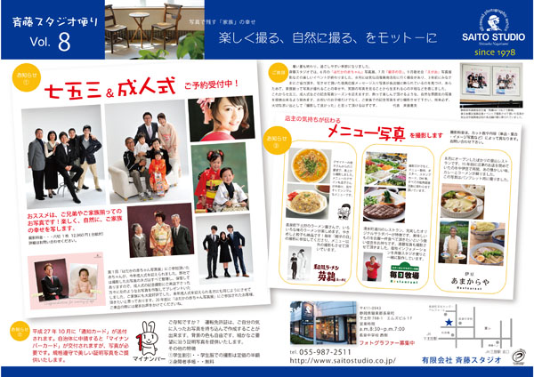 年2回、5月と9月に「斉藤スタジオ便り」を発行して三島新聞堂と佐野新聞店に折り込みを依頼しています。