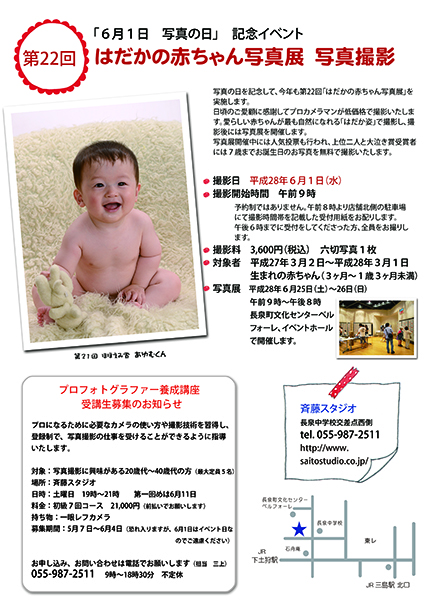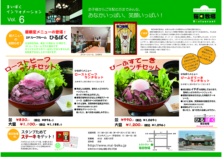 5月と9月の年2回、斉藤スタジオ便りを発行しています。 折り込み広告ですが、レストラン毎日牧場の毎牧インフォメーションとの両面広告にしています。 写真撮影、企画、編集デザインをスタジオ内部で行っています。 斉藤スタジオ便りはVol.9、毎牧インフォメーションはVol.6になります。 5月25日頃に折り込みチラシが入る予定です。