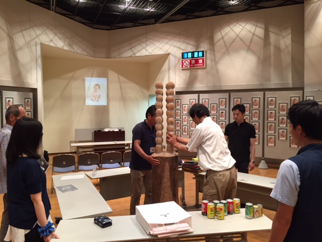 長泉町文化センターベルフォーレのイベントホール、 天井も高く温かみのあるホールで、 赤ちゃんのモノトーンの写真と石渡さんの彫刻がとてもよく似合います。
