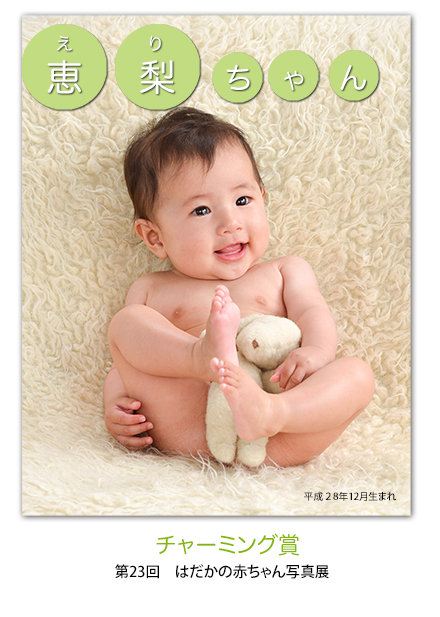 毎年写真の日の6月1日に撮影しています。 その中から「ほほえみ賞」「チャーミング賞」「大泣き賞」の3つの賞を選び、受賞者は7歳まで毎年誕生日に無料で写真を撮影させていただいています。
