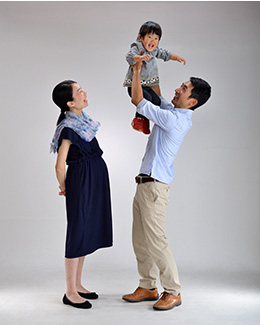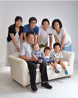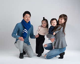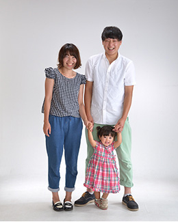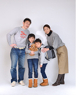 お祝いの記念写真と違い、普段着での撮影をお勧めしています。その方がそのご家庭の雰囲気が伝わりやすいと感じます。